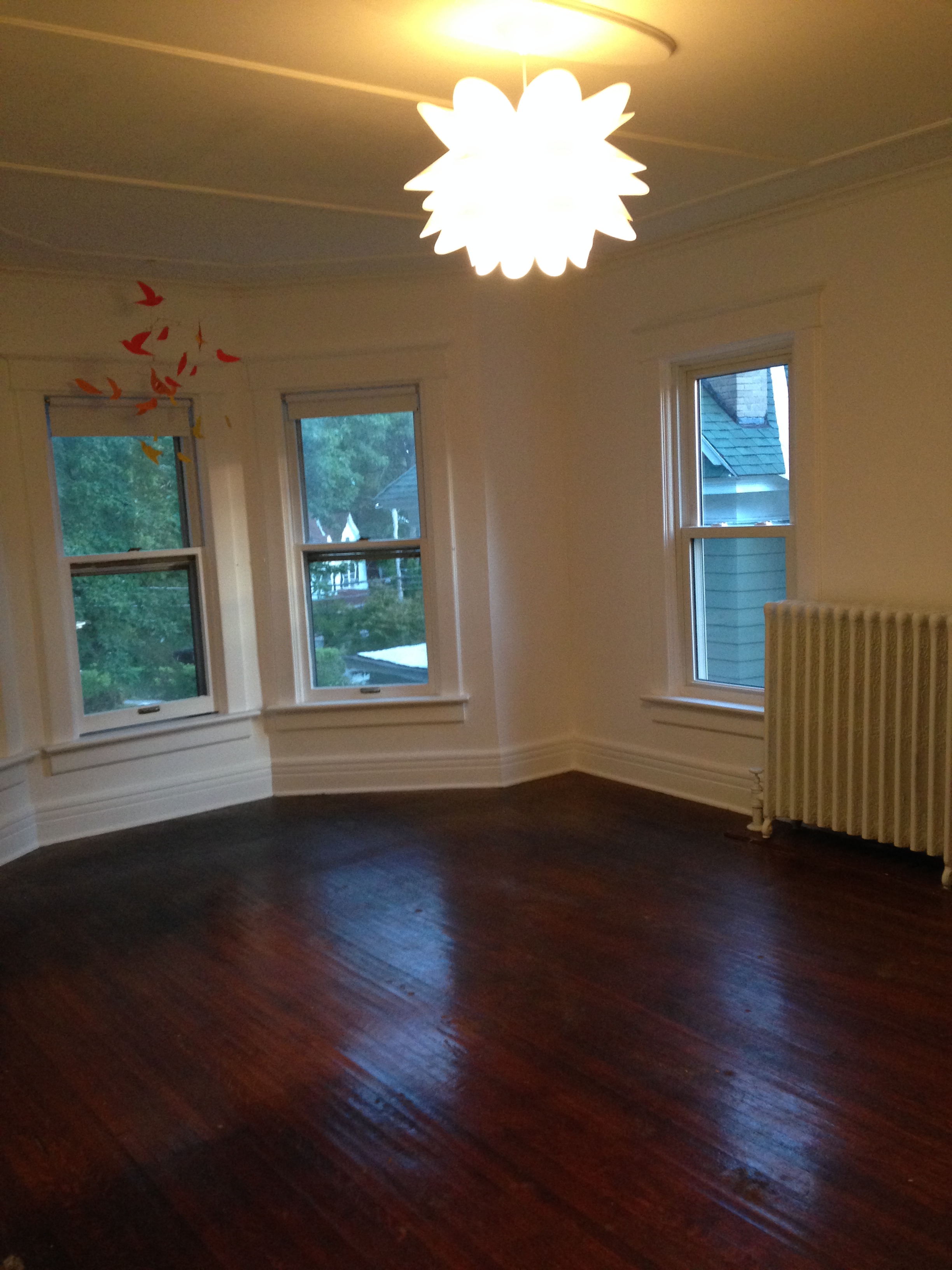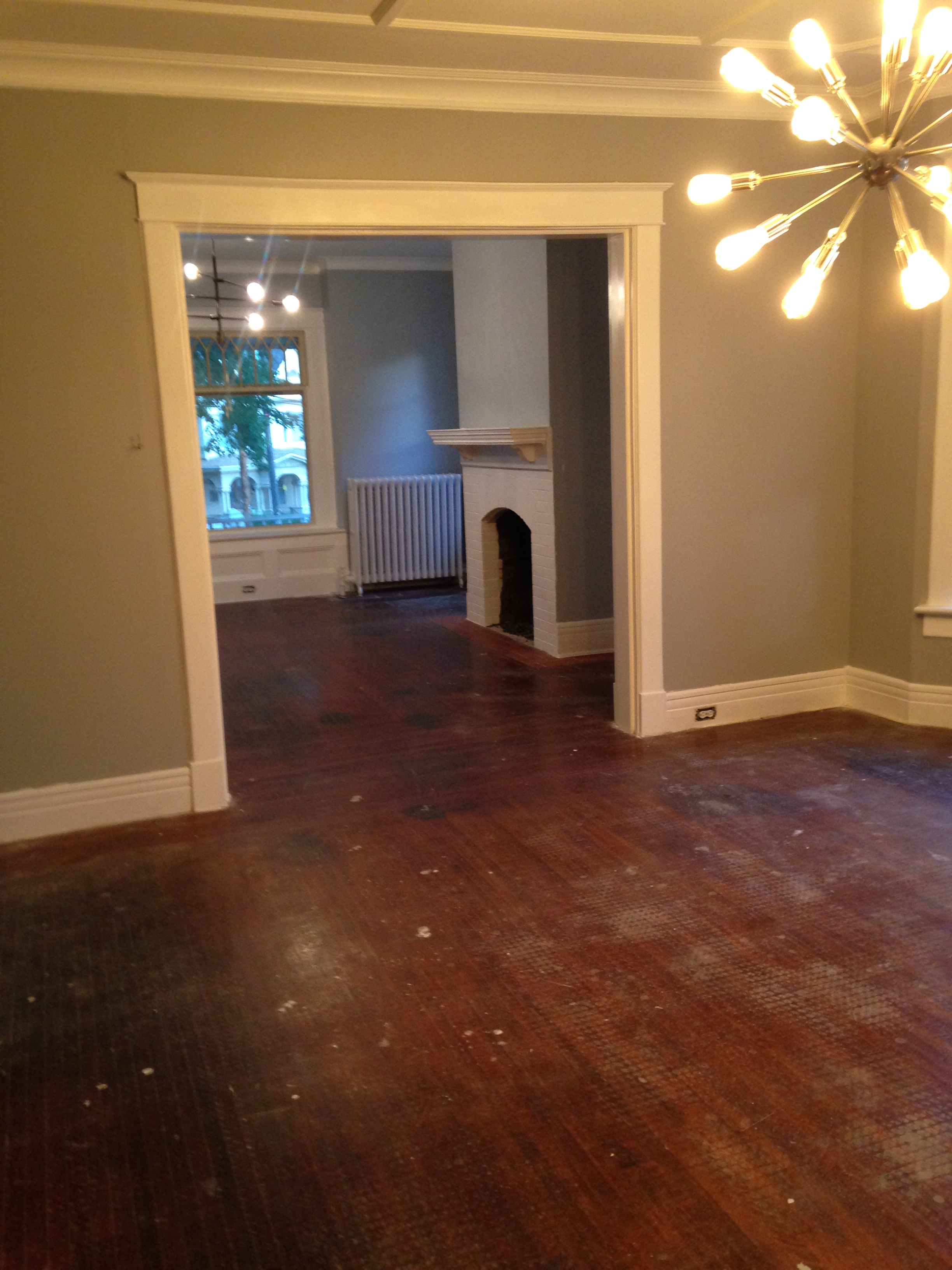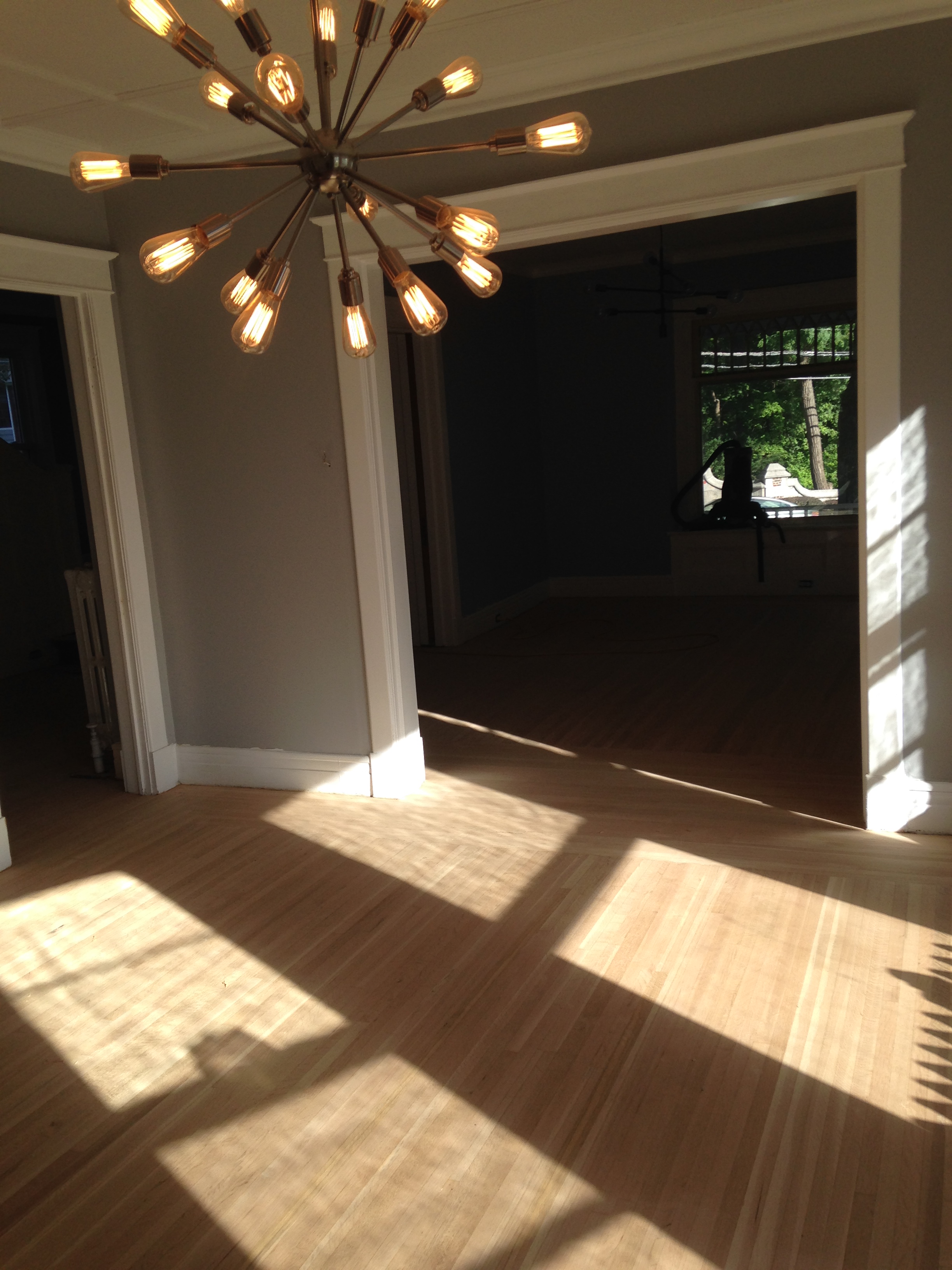 Then, finally, it was time to refinish the floors! S and I agree that the change from green shag to newly finished hardwood was the biggest transformation the house underwent and the thing that made it finally feel like our home after six months. I know that might sound ridiculous, but I never realized how much your environment affects your mood until we moved into this house where nothing felt like ours and pretty much everything felt like it belonged in another era. But, I digress! We had all the floors sanded down to their original finish, and briefly considered leaving them white with just a coat of polyurethane because they were just so beautiful.