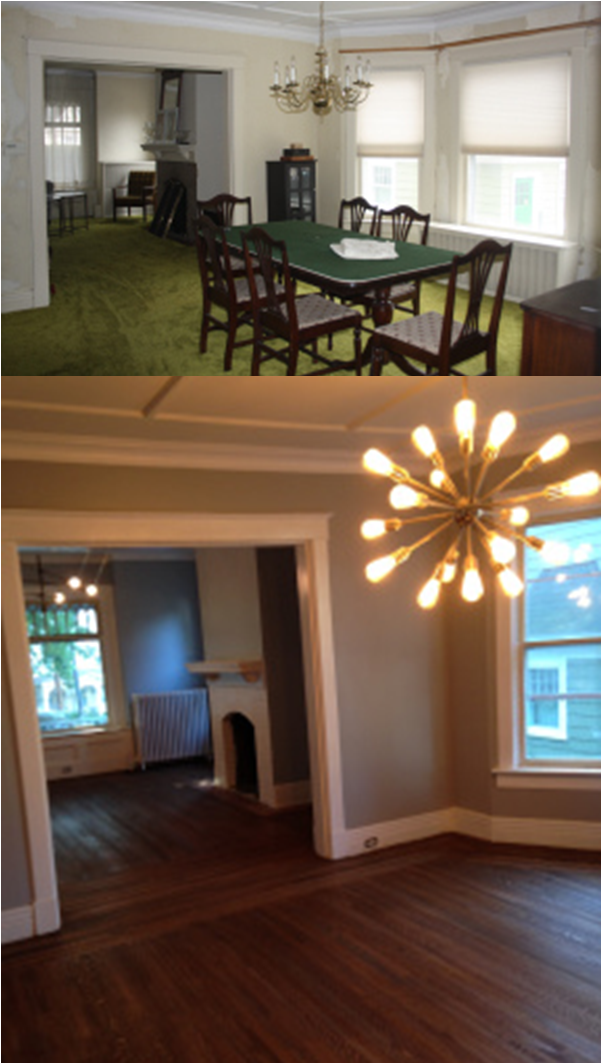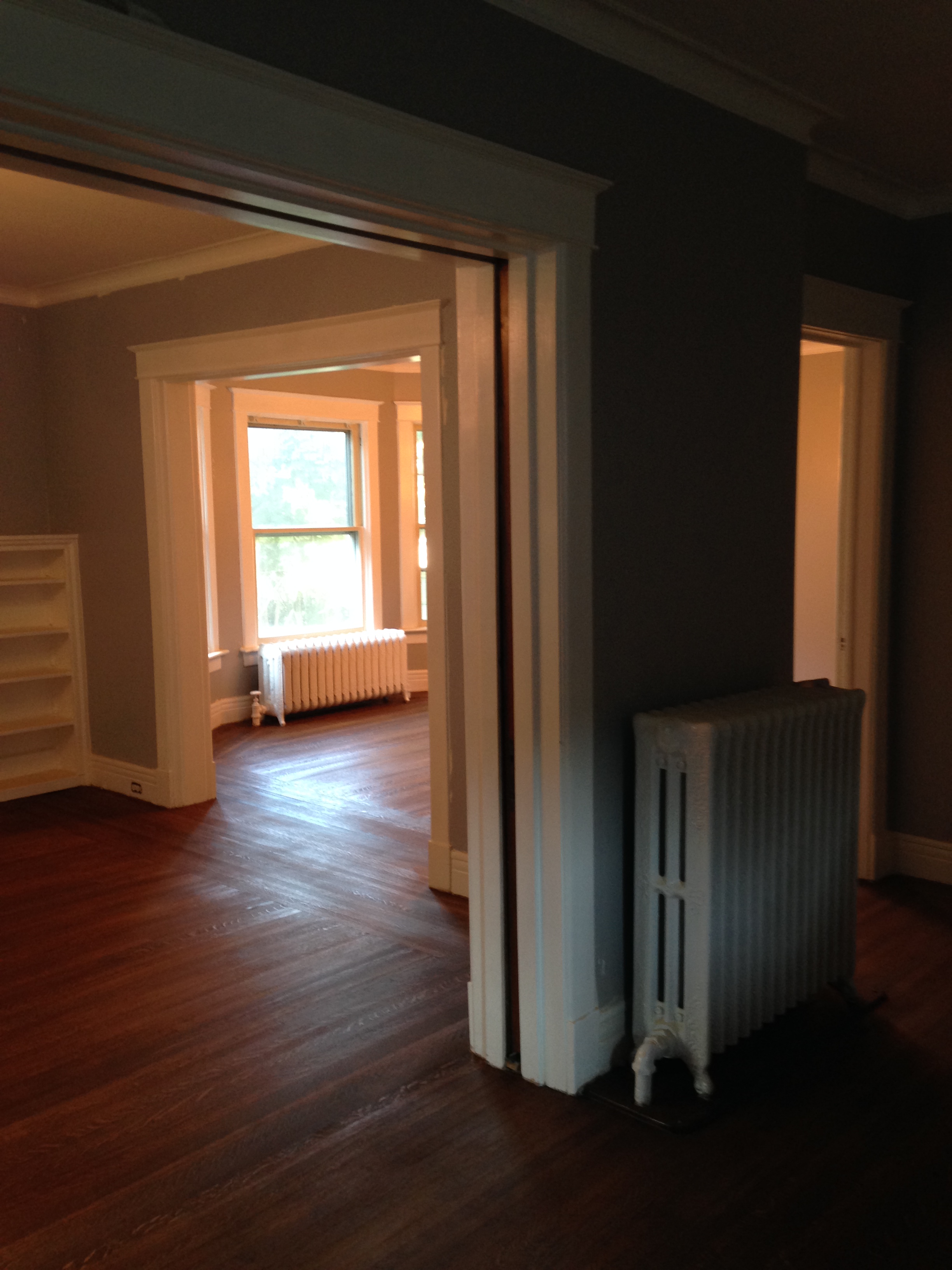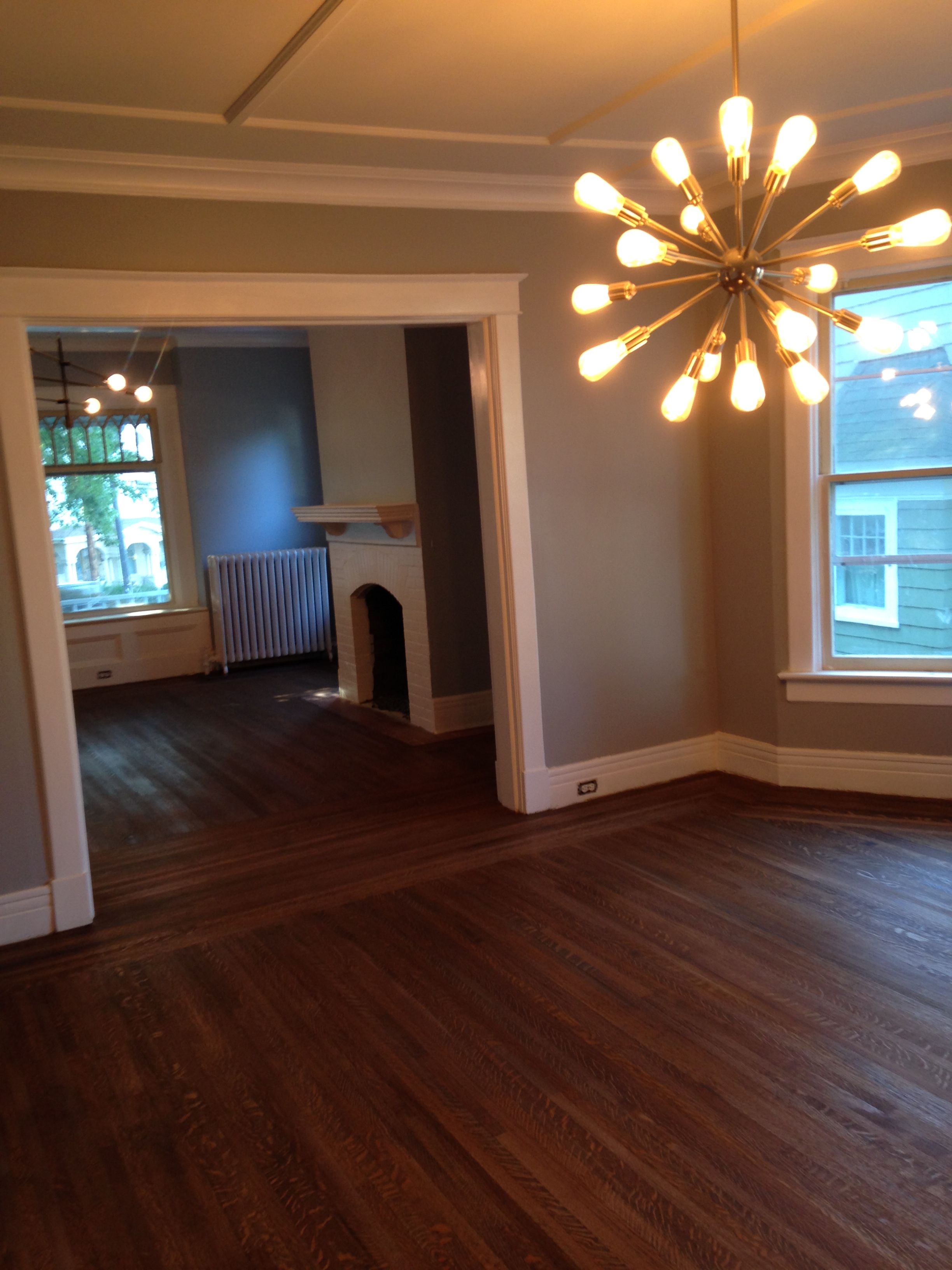 Then, finally, it was time to refinish the floors! S and I agree that the change from green shag to newly finished hardwood was the biggest transformation the house underwent and the thing that made it finally feel like our home after six months. I know that might sound ridiculous, but I never realized how much your environment affects your mood until we moved into this house where nothing felt like ours and pretty much everything felt like it belonged in another era. But, I digress! We had all the floors sanded down to their original finish, and briefly considered leaving them white with just a coat of polyurethane because they were just so beautiful.