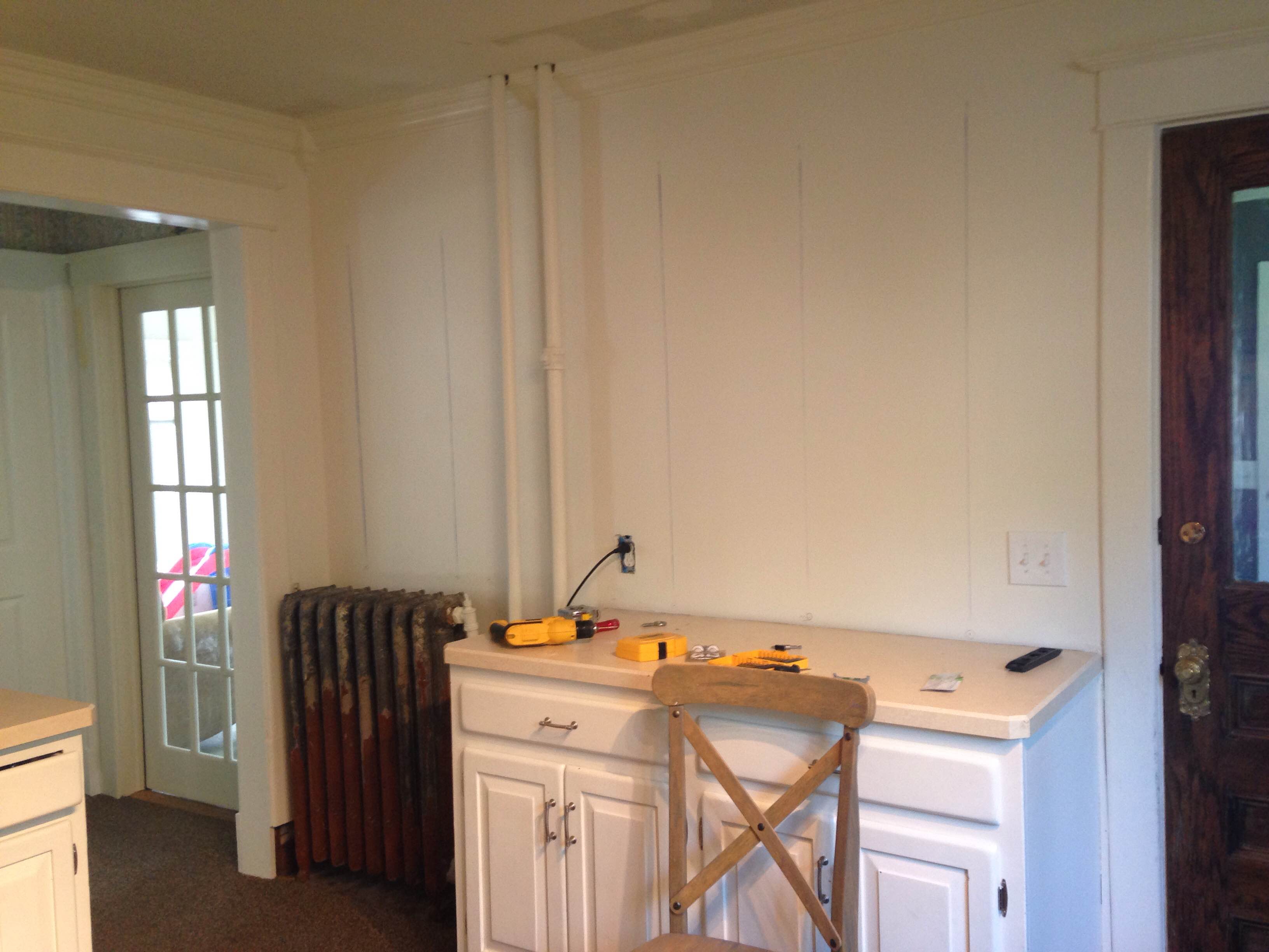 Then, I washed the chalk off the walls, repaired the test holes S had made, sanded, and repainted the wall. And spray painted the radiator, which probably killed more than a few brain cells. I will not be sad if I never have to paint a radiator again!