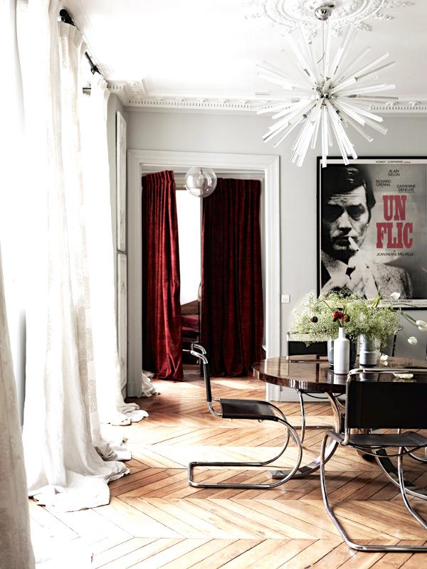I found this moody home, designed by Marianne Teigan, via Desire to Inspire, one of my favorite daily reads. It is definitely one of the best spaces I’ve ever seen. I love the layered neutrals, puddling pinch pleat curtains, black frame windows, beautiful worn herringbone wood floors, and the mix of modern lighting and decor with choice antiques, ornate millwork and grand proportions. See more here.
