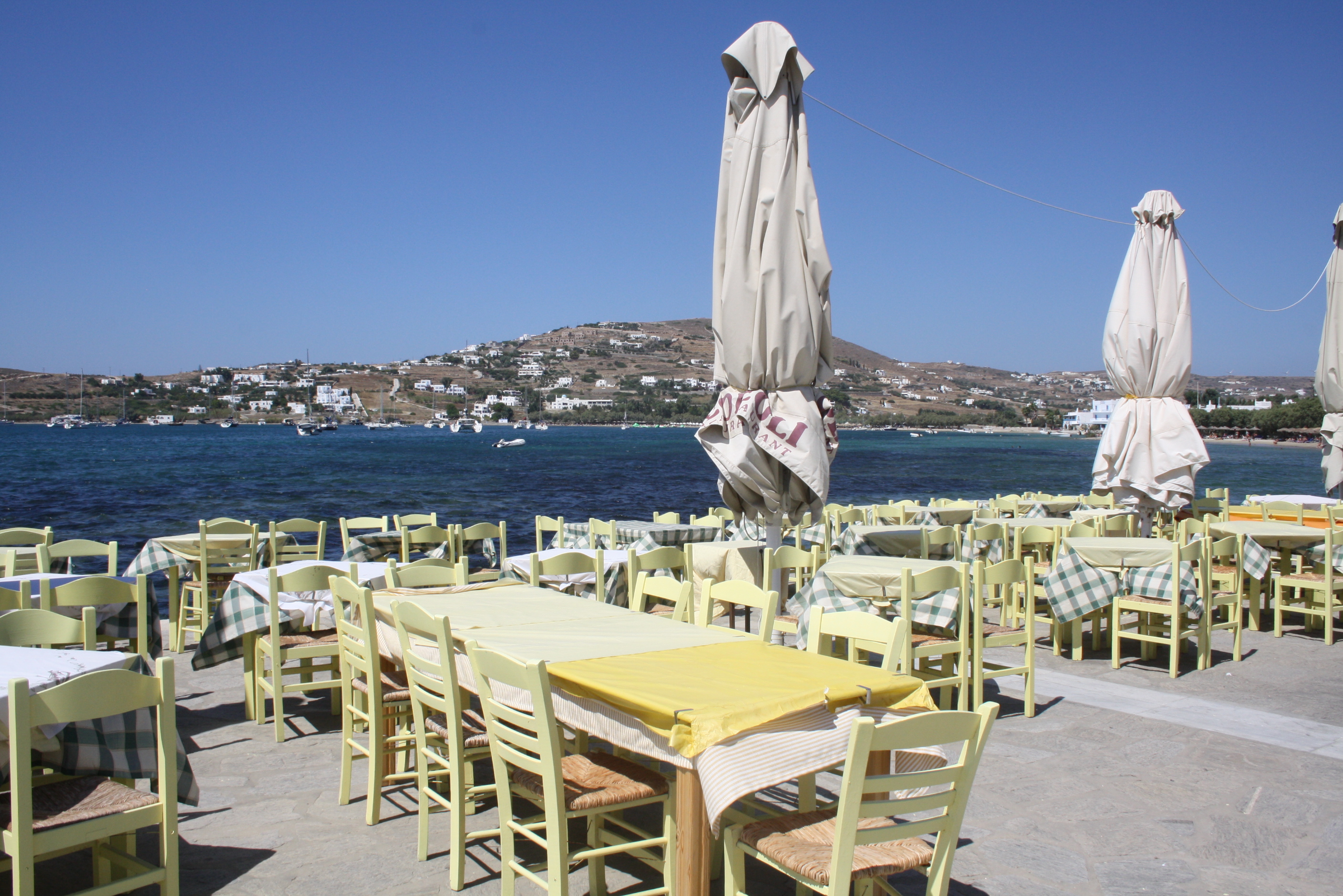 The same day that we visited the ancient sights in Athens, we took an afternoon ferry to the island of Paros in the Cyclades group of islands, which includes Santorini and Mykonos. We chose Paros because it is a slightly less popular destination in the Cyclades but it still has beautiful sights and beaches. We like a more laid-back atmosphere and we thought it would be better for G, as well.