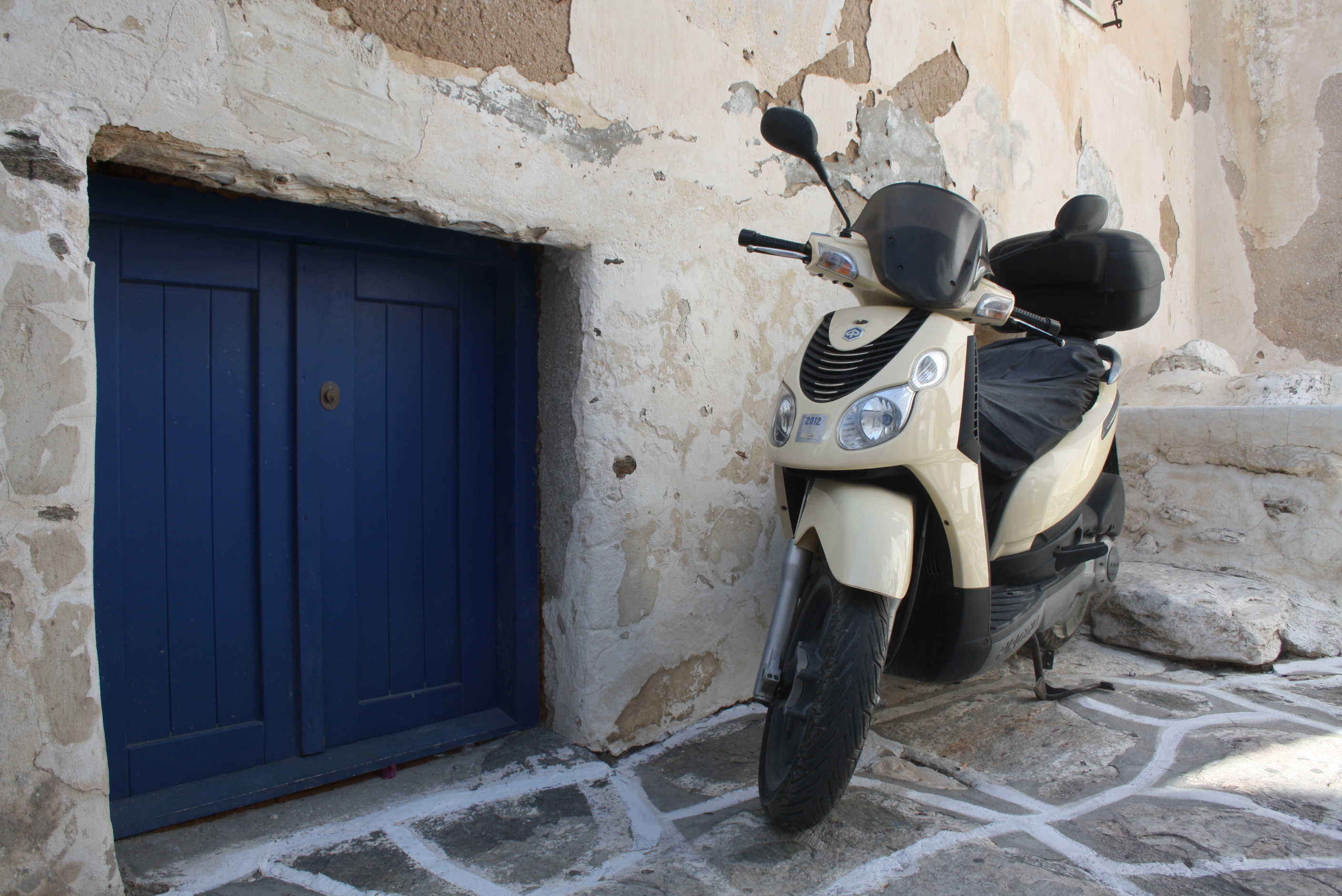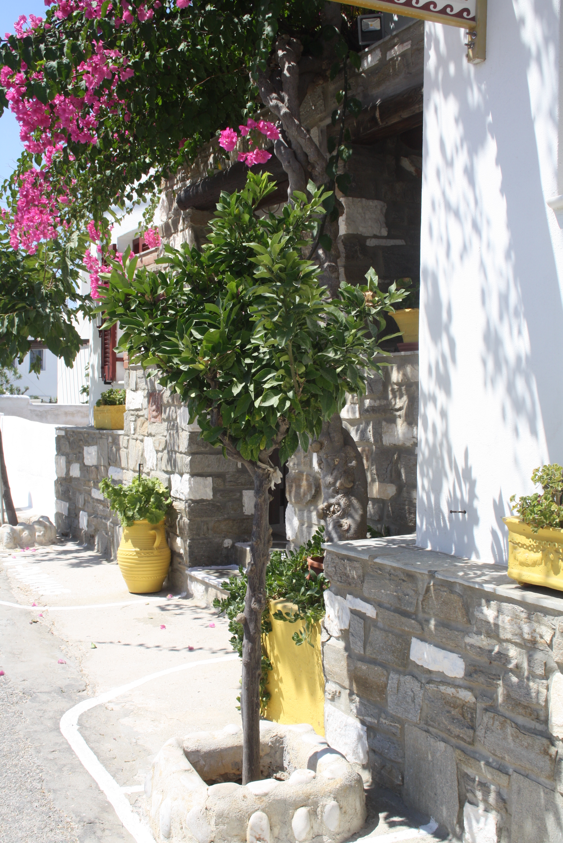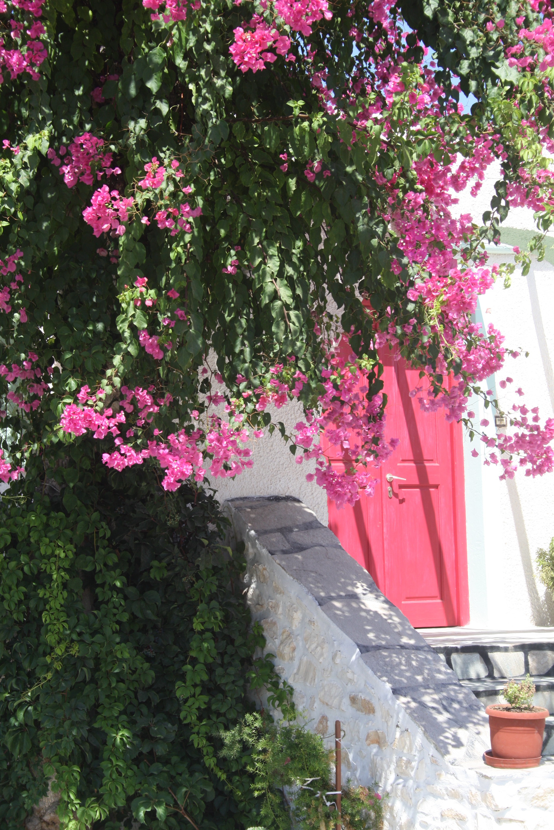 Afterwards, we walked around Parikia a bit. There were so many beautiful things to see, I couldn’t stop taking pictures! All of the buildings are whitewashed with doors and windows painted in bright candy colors. Fragrant plants cascade out of massive terracotta pots, marble steps lead into humble homes, intricate doors and gates pop off of the simple stucco walls, and the bougainvillea that grows rampant was in full bloom while we were there.