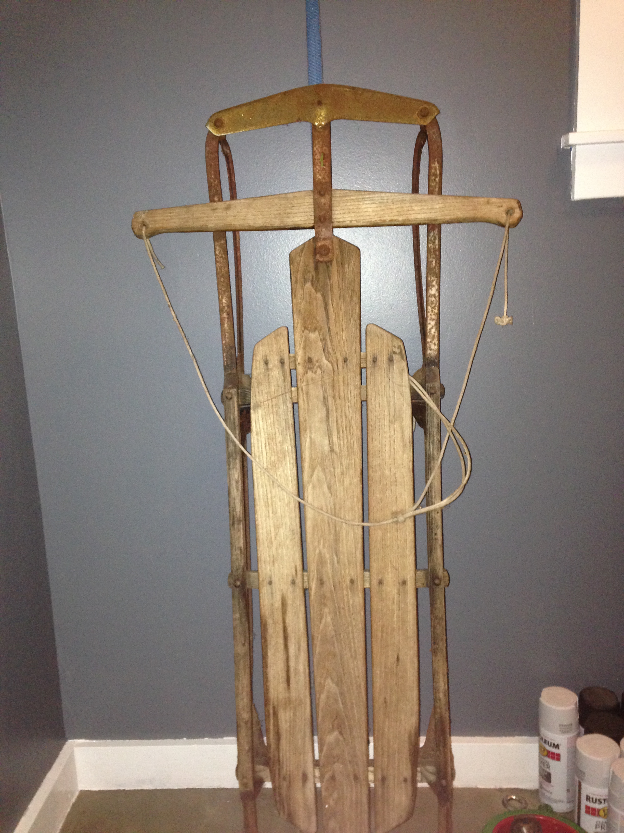 I also spent some time in the past few weeks working on an antique sled someone in my neighborhood left out for trash last year. I LOVE these old sleds, so I didn’t hesitate a moment to bring it home (yes, I am that person who brings trash home).