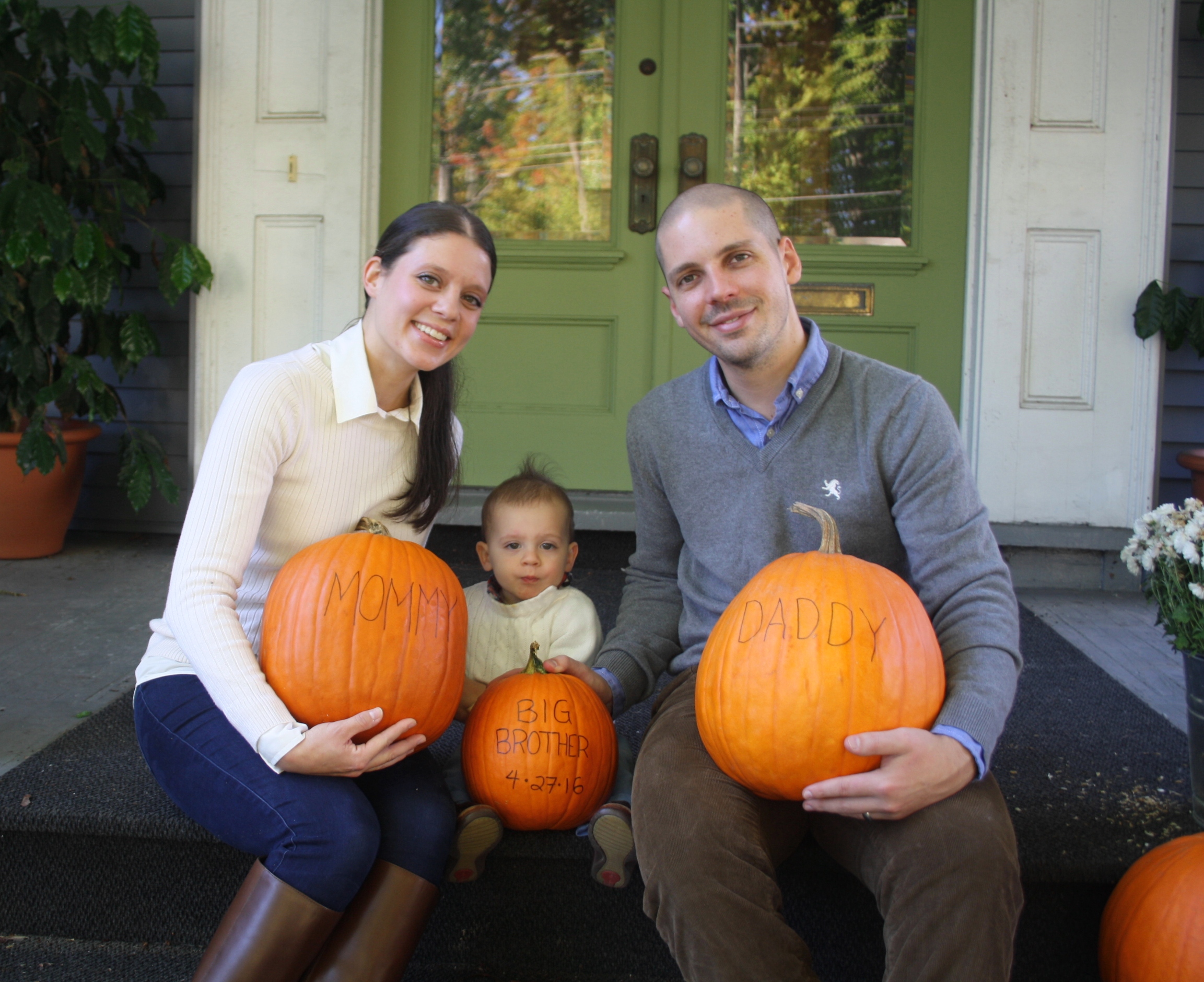 And, finally, I have a little announcement to make. We are expecting a new addition to our family in late April! We announced it to our friends and family with this fall-themed photo (which I can’t take credit for, I found the idea on Pinterest, of course!).