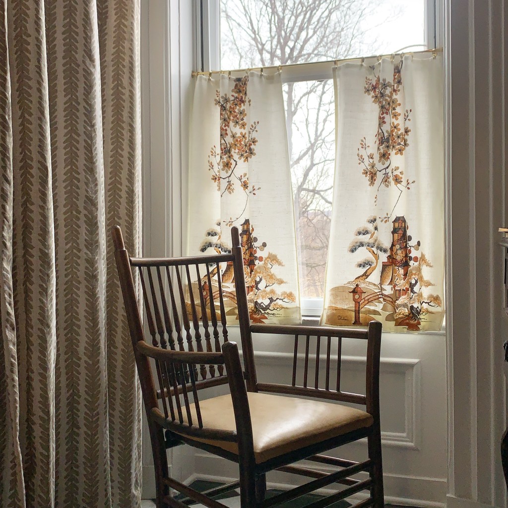 I finished the curtains – I lined them and used vintage style cafe curtain clips to hang them.