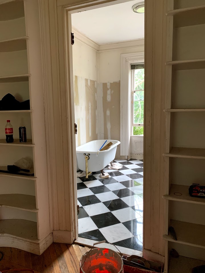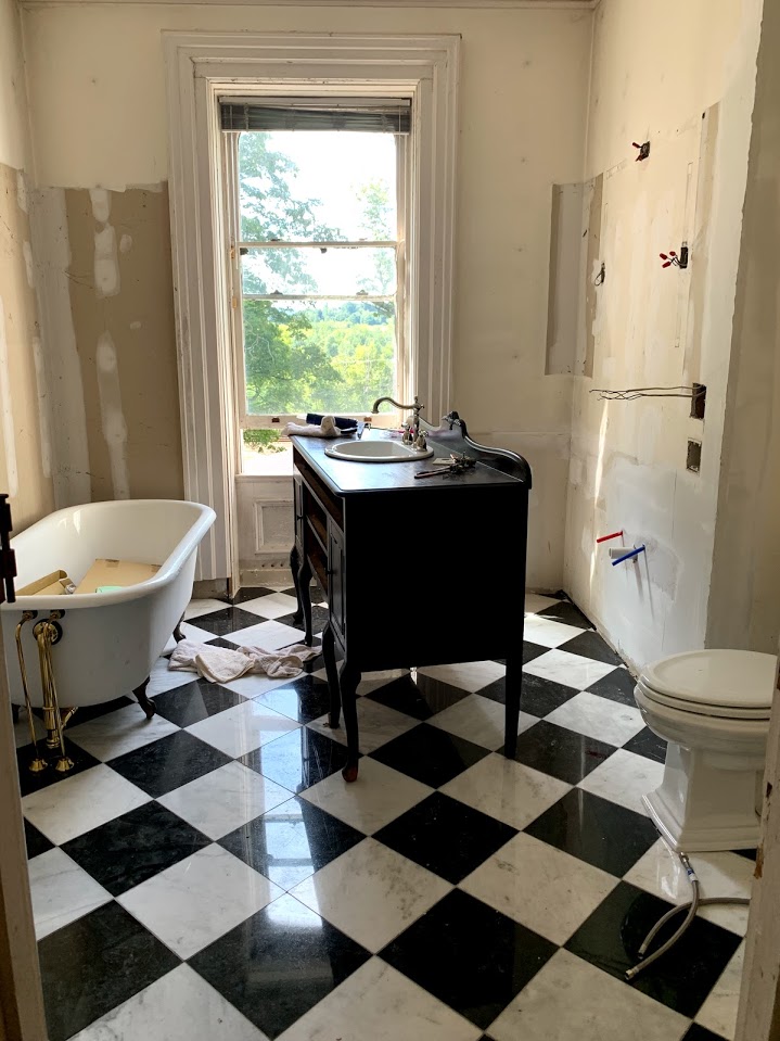 This is when remote learning started for my two boys, so work on the bathroom slowed down a lot.