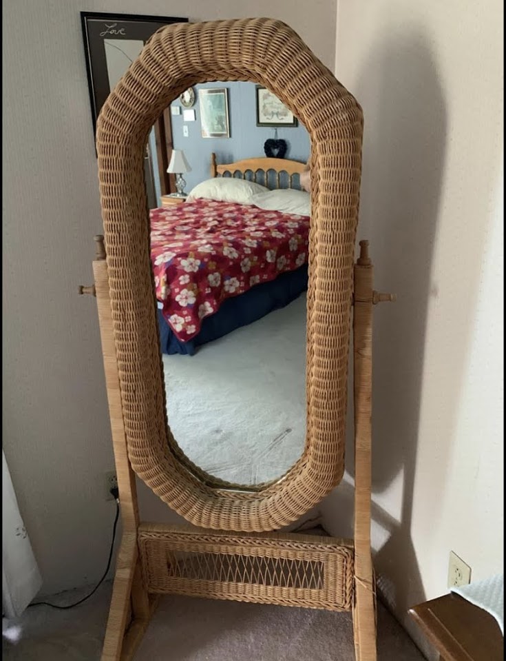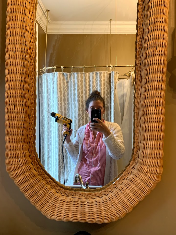 I found this vintage floor mirror and took it off its base to use as the bathroom mirror. I love the large scale, interesting shape, and casual texture it brings to the room.