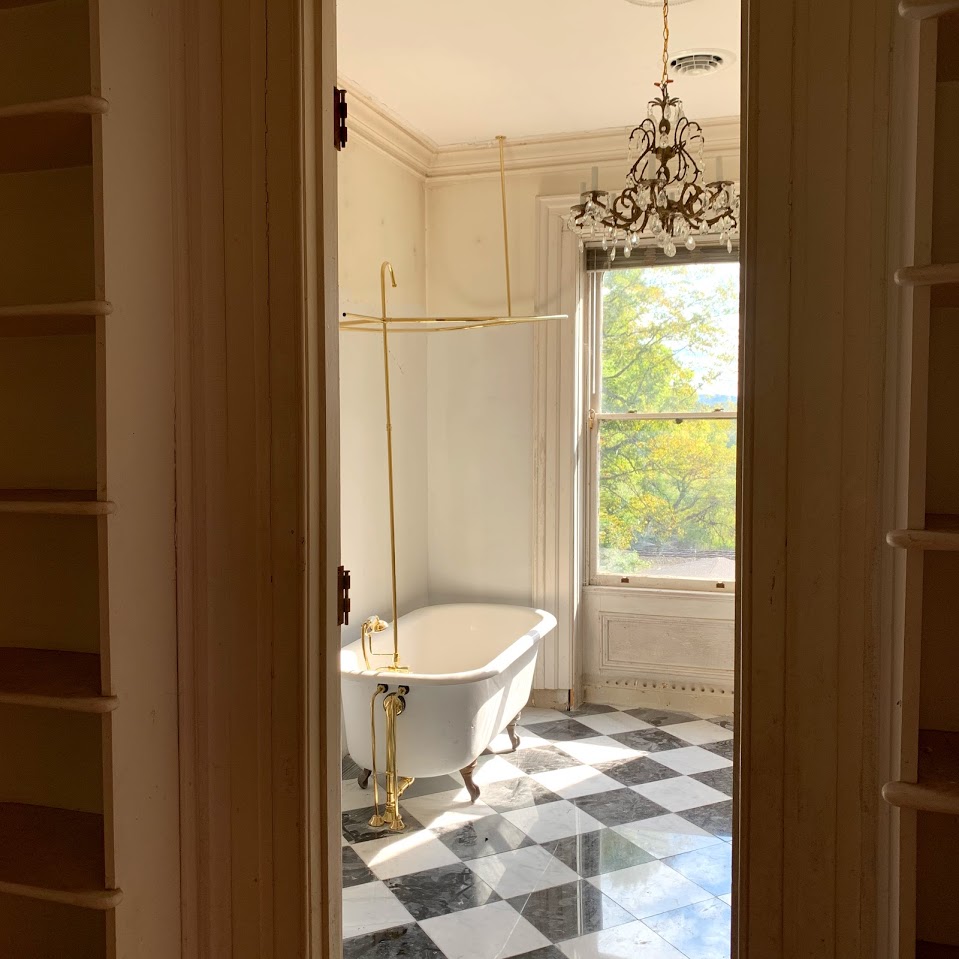 This is also when I finished the shower curtain from this beautiful Schumacher fabric I found at Fabric.com! Written tutorial here and video tutorial here.