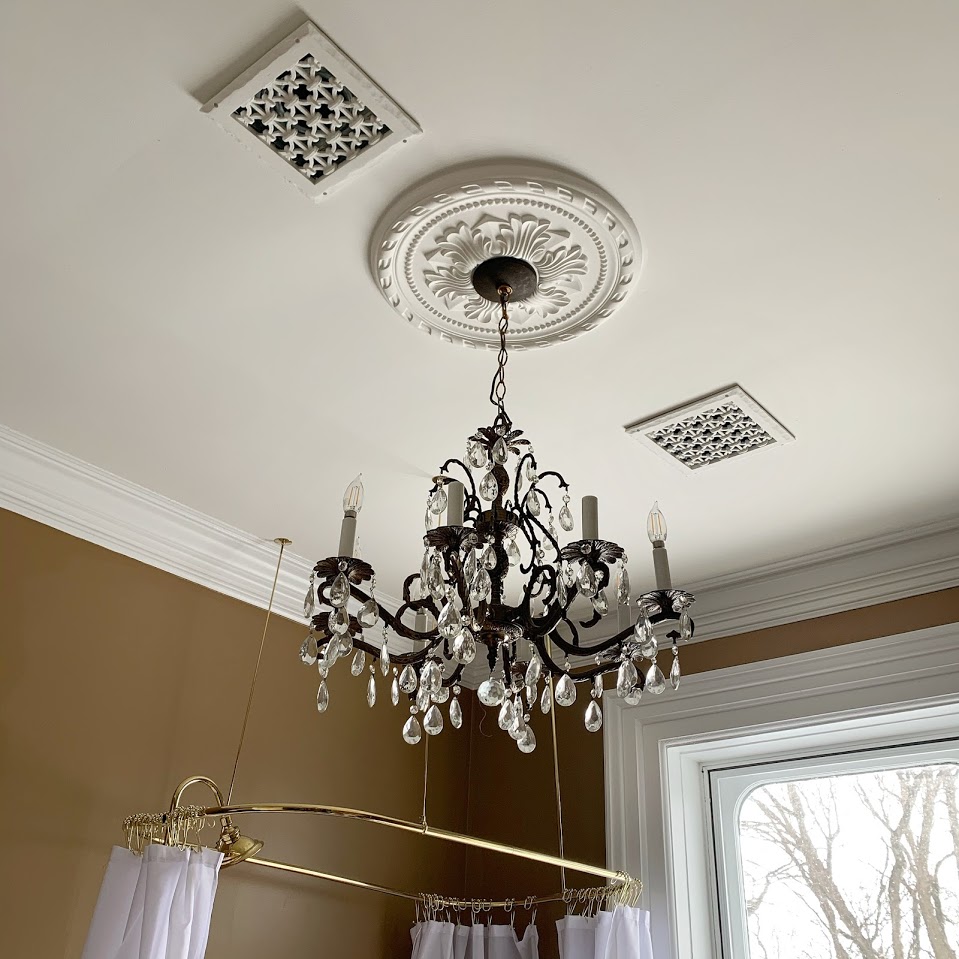 A vintage chandelier I found on Facebook Marketplace was installed.