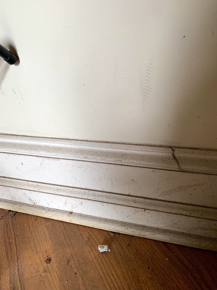 We also installed the baseboard I pieced together in August – doesn’t it look so much better already?