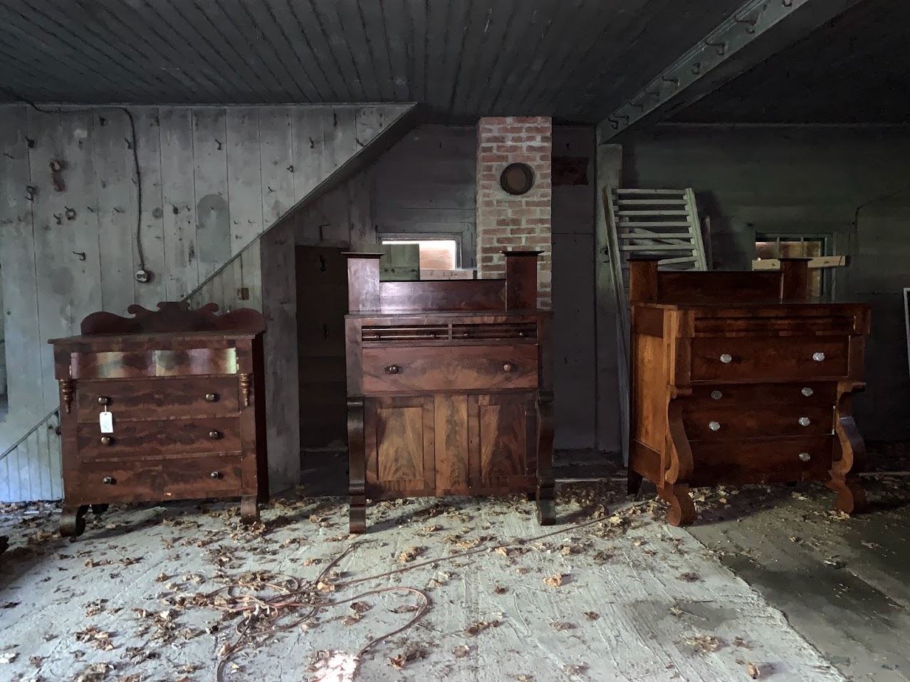 My mother in law found me these three empire dressers at an estate sale: the one in the middle was destined for the bathroom – we use it for towels, medicine and product storage.