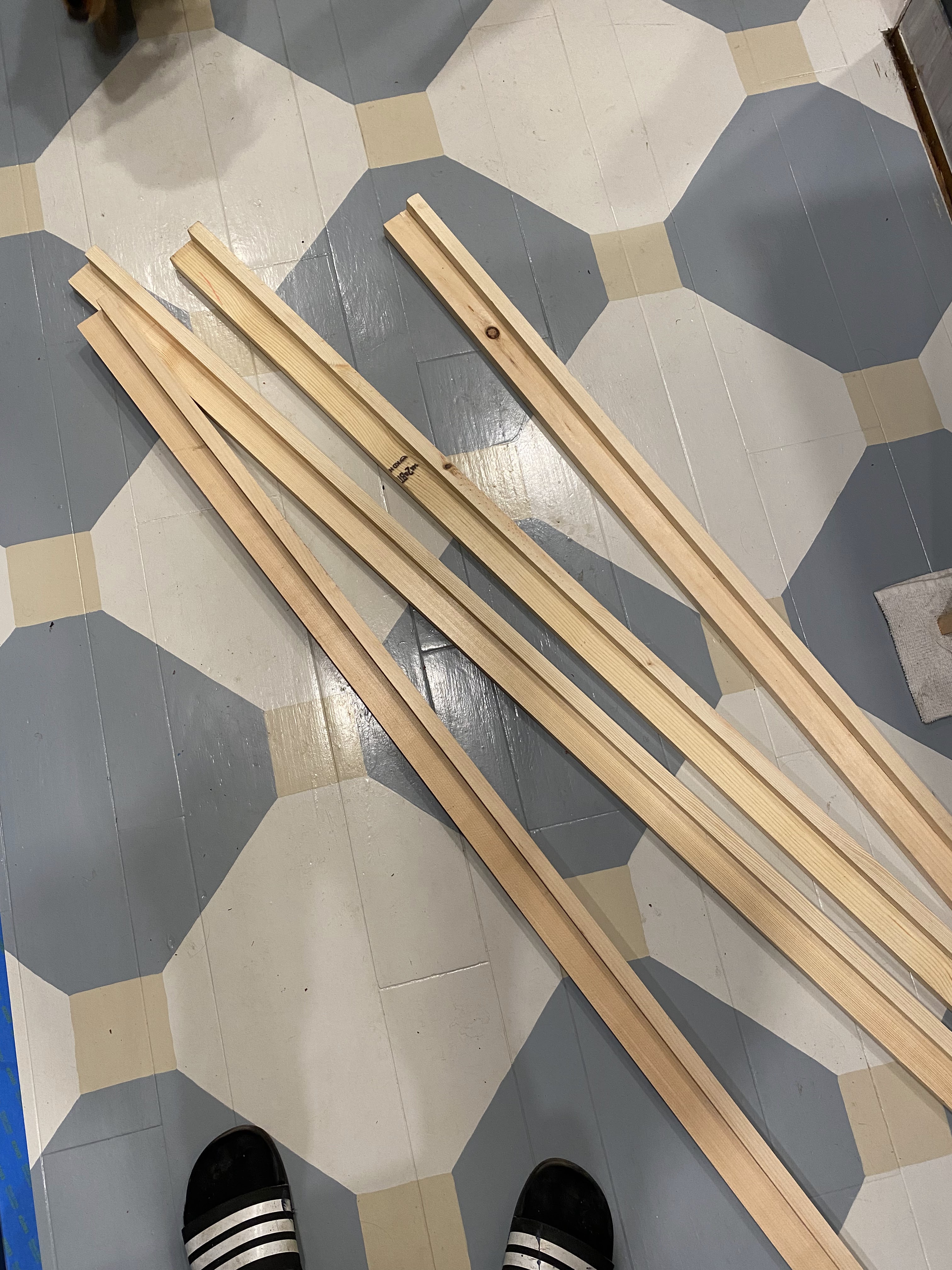 First, I cut down the 1×2 boards to the length I wanted. I left room for sides, also made from 1×2 – so 3/4 inch on each side.