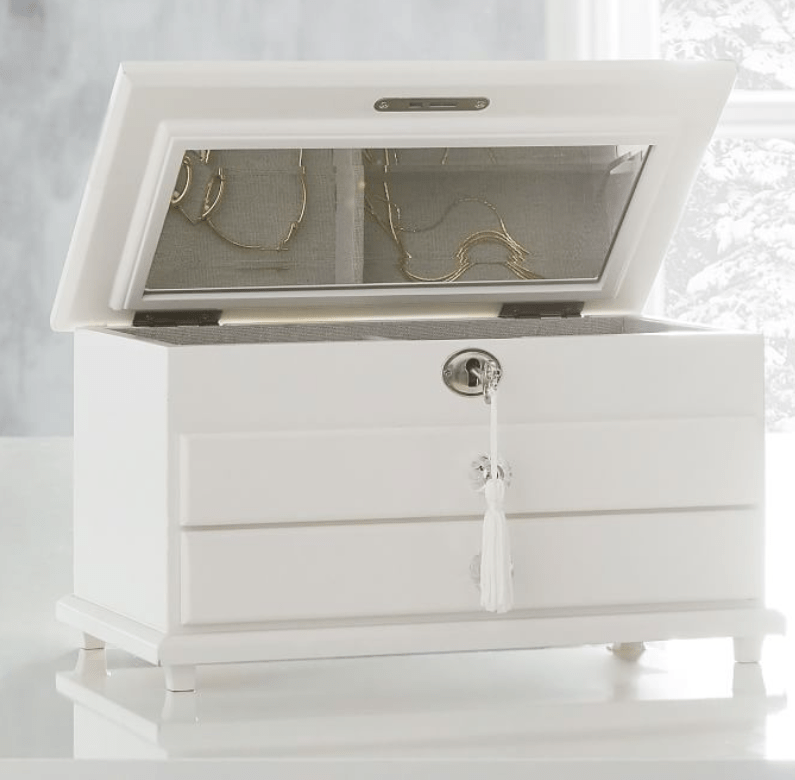 I love that this jewelry box can easily go from childhood to adulthood with its chic, traditional design.