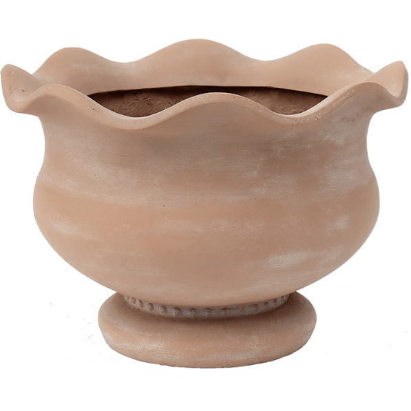 I love classic terracotta pots — they add such warmth and authenticity. This one is a more pale version of that hue, with the sweetest scallop and beaded borders to make it just a little different. Two of these at an outdoor room “entrance” or on all four corners with tall topiaries would make such a statement.