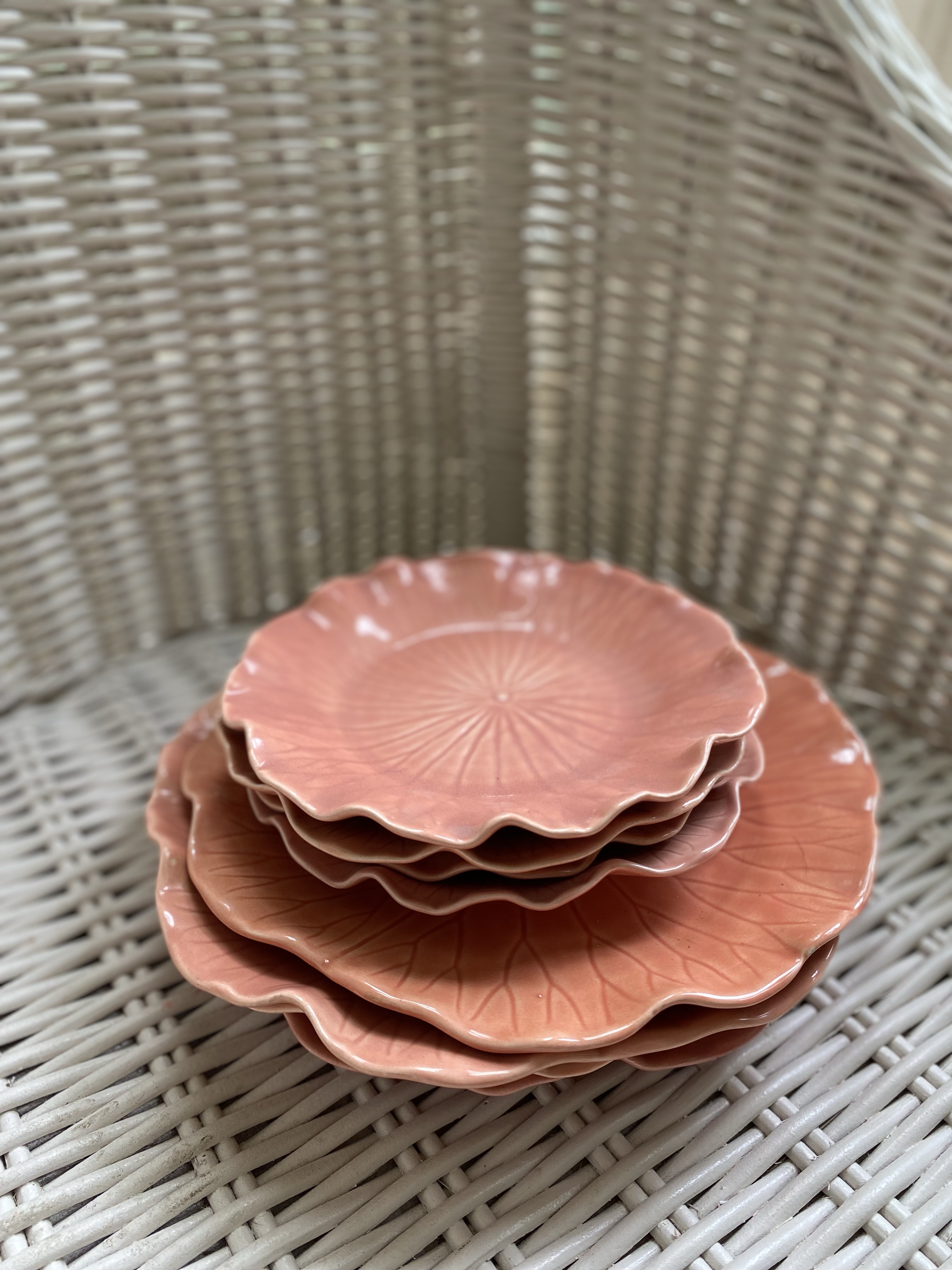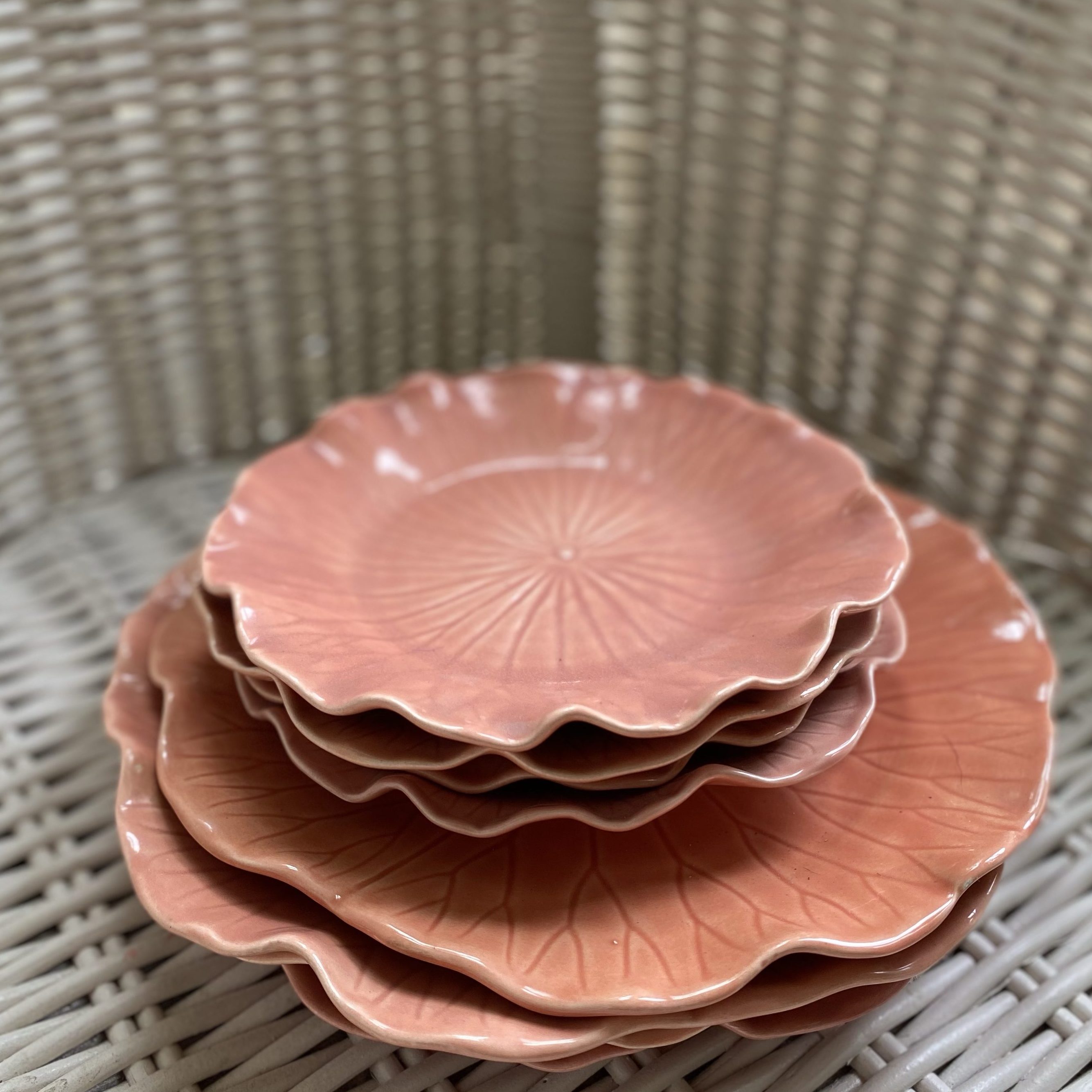 Then my thoughtful neighbor Laurie found this pink set of plates at a garage sale and picked them up for me for $15! The small plates say Lotus Poppytrail and the large plates have serial numbers and dates on them from 1978-1979. I love the exaggerated ruffle edge!