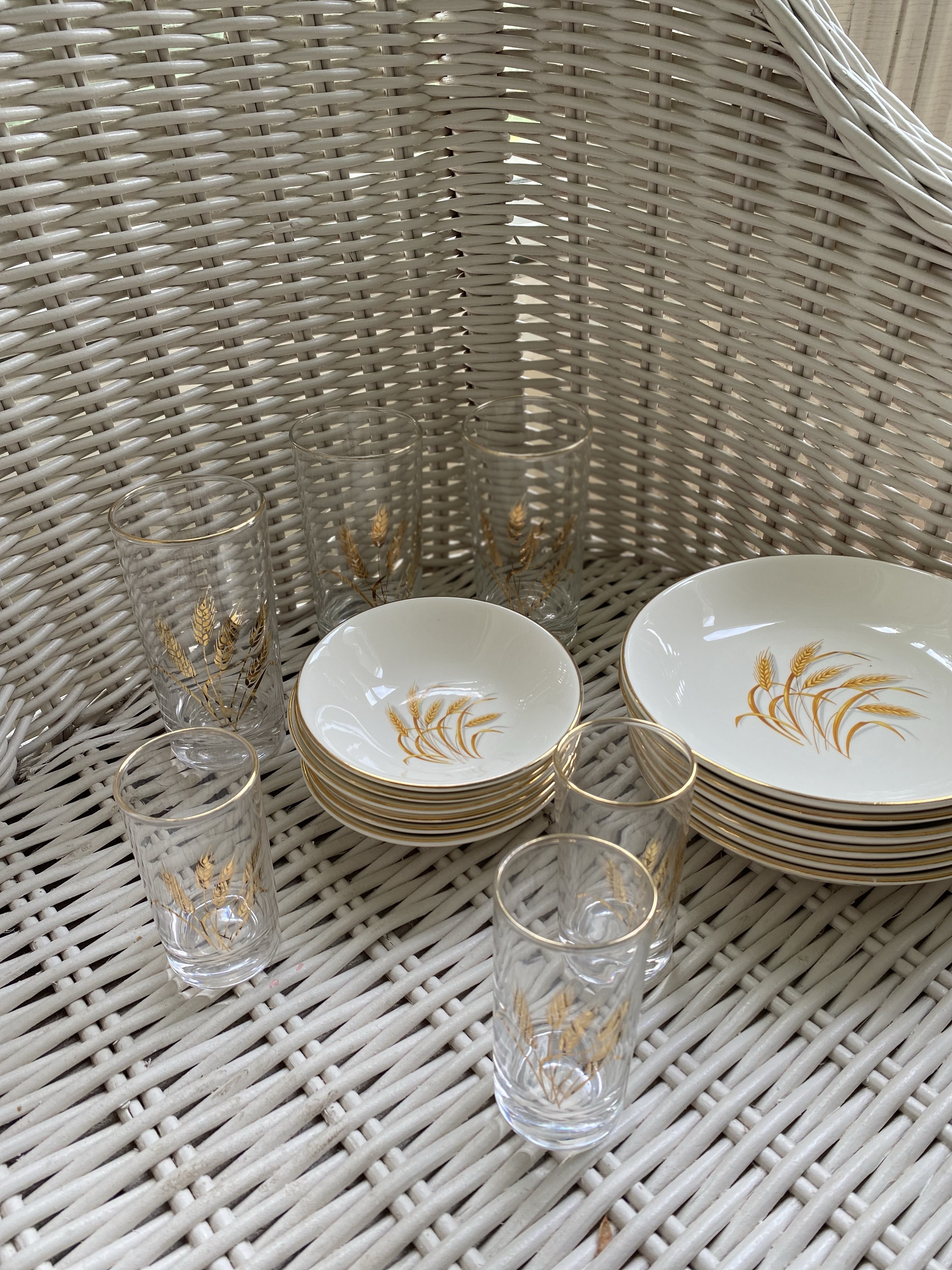 My equally kind friend Kaitlynde gifted this wheat set to me — I can’t wait to use it for a cozy fall dinner and I love the metallic gold on the large and small cups. The stamp on the back says Golden Wheat.